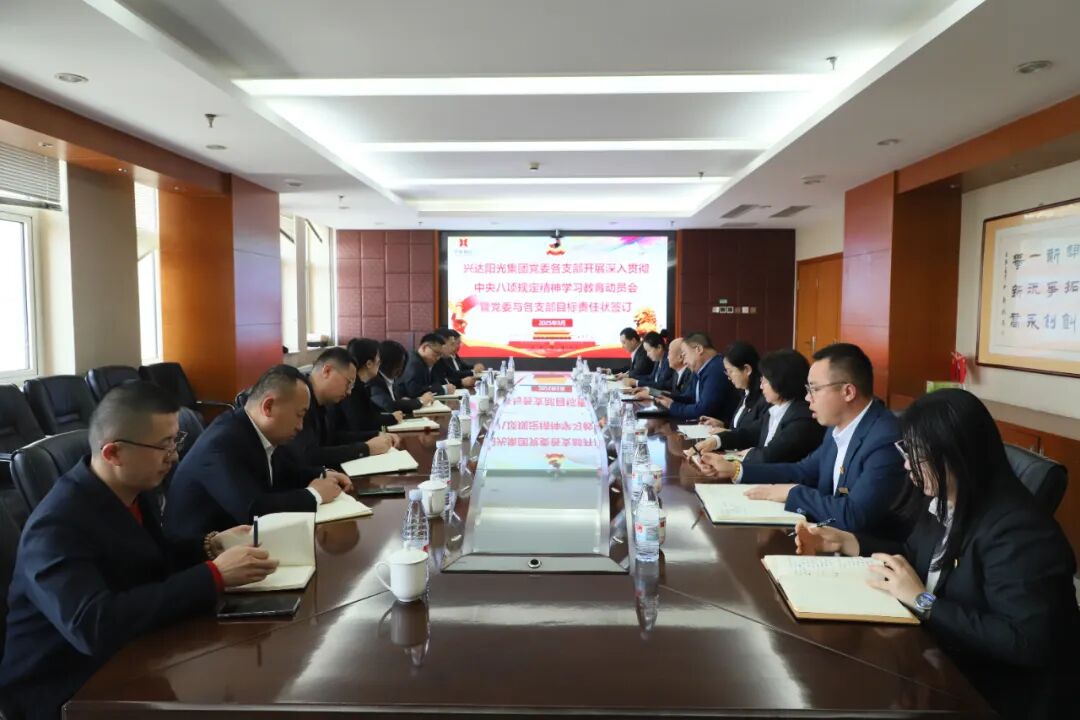 3月27日,兴达阳光集团党委各支部贯彻中央八项规定精神学习教育动员部署暨党建工作目标责任状签订会召开。集团党委副书记袁智华出席会议并讲话,集团党委副书记李敏出席会议。集团党委组织委员、综合办主任马梁主持会议。集团党委班子成员、各支部书记、支委成员、党建顾问、党建指导员、各支部党员参加会议。