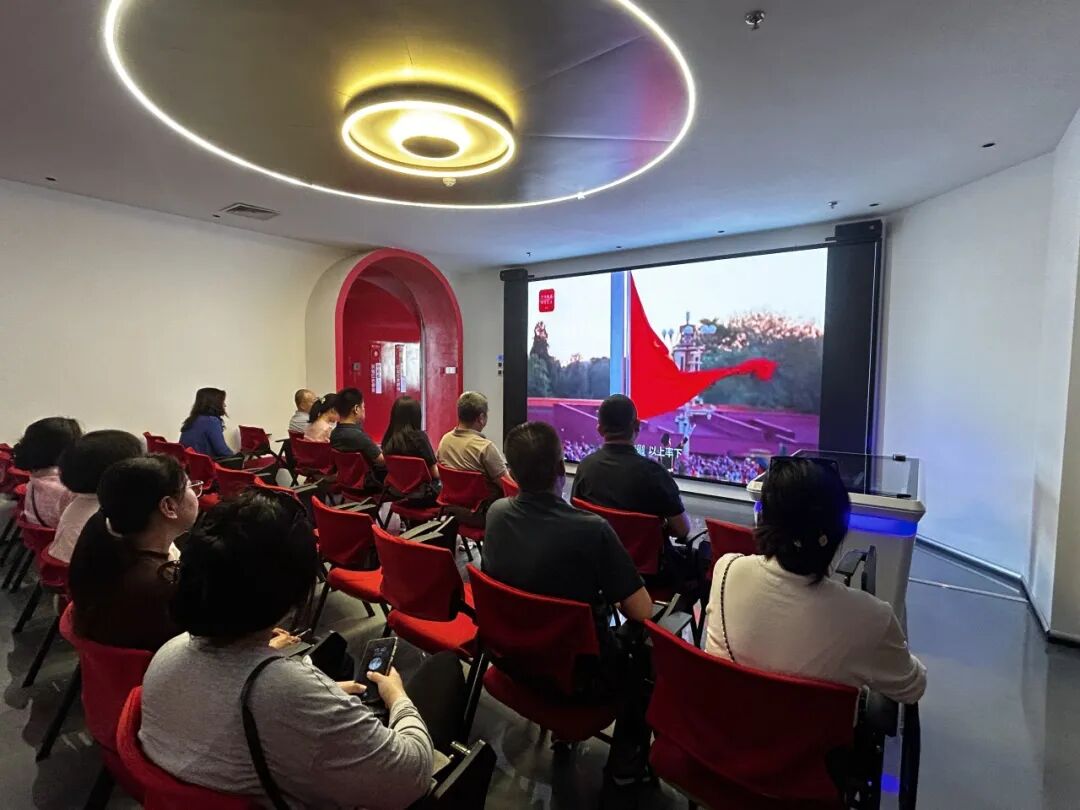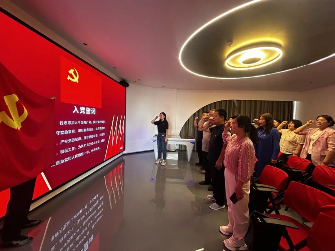 活动中,全体党员重温了入党誓词。并在红色智慧厅,利用VR党建沙盘,观看学习了《中央八项规定改变中国》教育专题片内容。