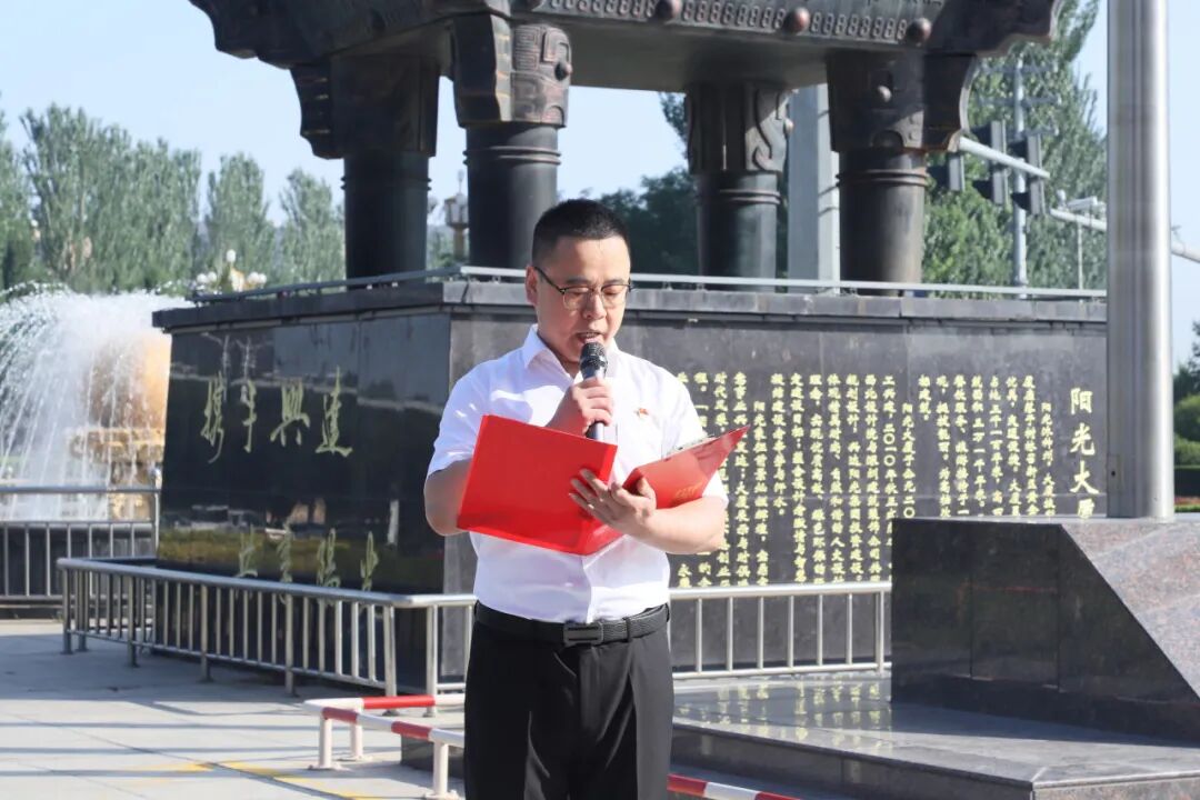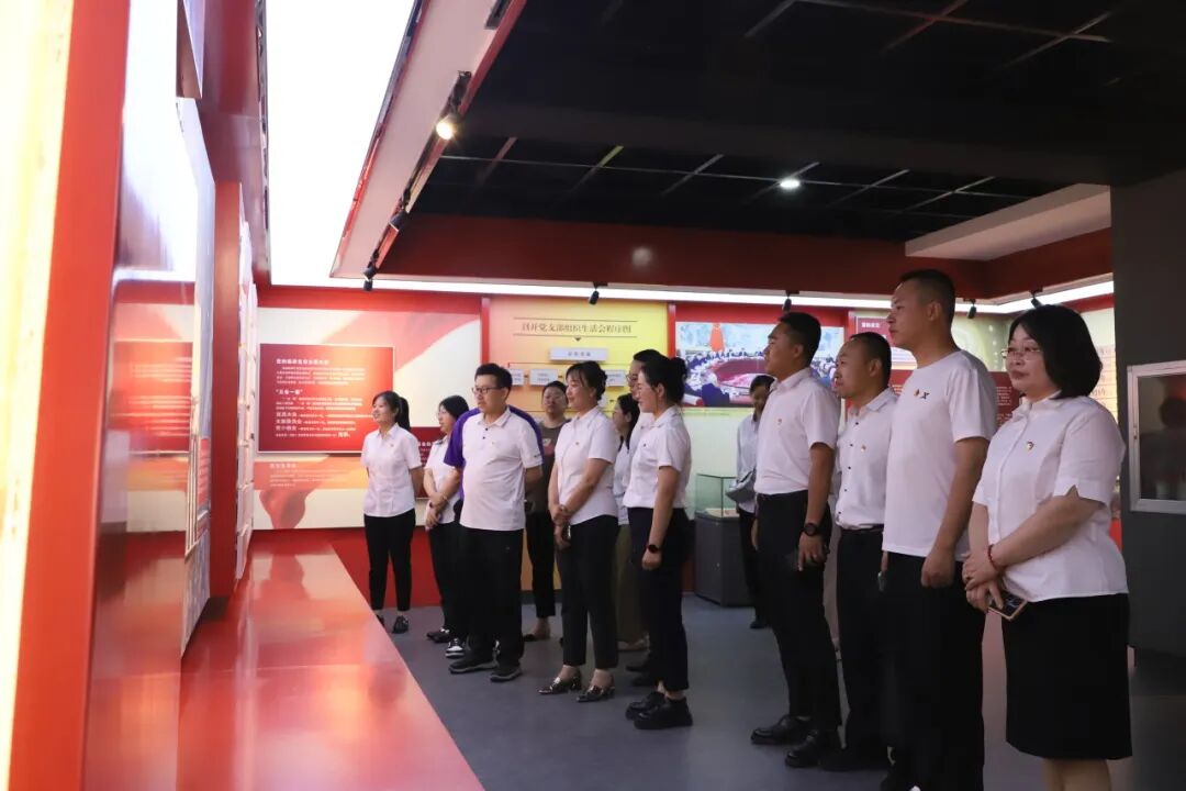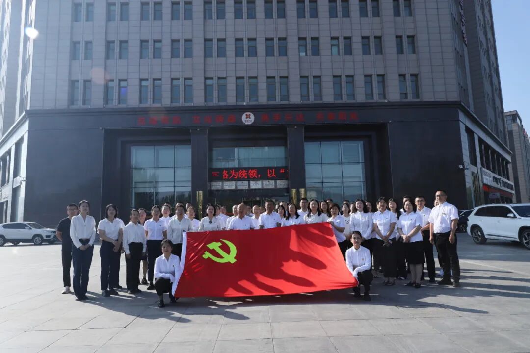 活动中,首先举行了升国旗仪式。上午八时,全体员工齐聚感恩广场,升国旗仪式正式开始。护旗手迈着矫健的步伐护卫国旗入场,在庄严的《国歌》声中,鲜艳的五星红旗冉冉升起,随风飘扬,全体人员行注目礼。 党员代表梁超宇在国旗下发表感言,表示将以更高的标准要求自己,以更强的责任感投入工作,用行动诠释担当,为助推企业转型升级、提质增效展现新作为、做出新贡献。 活动中,全体党员面向党旗,重温了入党誓词,表达了坚定理想信念,主动担当使命,感党恩,听党话,跟党走的炽热情怀。 活动中,全体党员还深入达旗党员政治生活馆参观了“牢记嘱托·坚定方向”“锤炼党性·滋养初心”“红色印迹·薪火相传”“百折不挠·砥砺奋进”“引领时代·逐梦前行”等板块内容。馆内丰富的展品、详实的资料、生动的影像,让全体党员沉浸式地感受了党的光辉历程、峥嵘岁月、非凡力量,激发了他们不忘初心,牢记使命,感恩奋进的动力。
